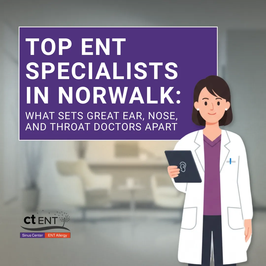 At CT-ENT, we understand that choosing the right ENT for sinus problems in Norwalk, CT takes more than a quick online search. This blog walks patients through what an ENT does, when specialized care may be needed, and the key factors to consider when comparing providers, including credentials, subspecialties, insurance, reviews, and convenience. By outlining what to look for—and how to recognize a good fit—this guide is designed to help patients feel more confident and informed as they evaluate ENT care options in the Norwalk area.